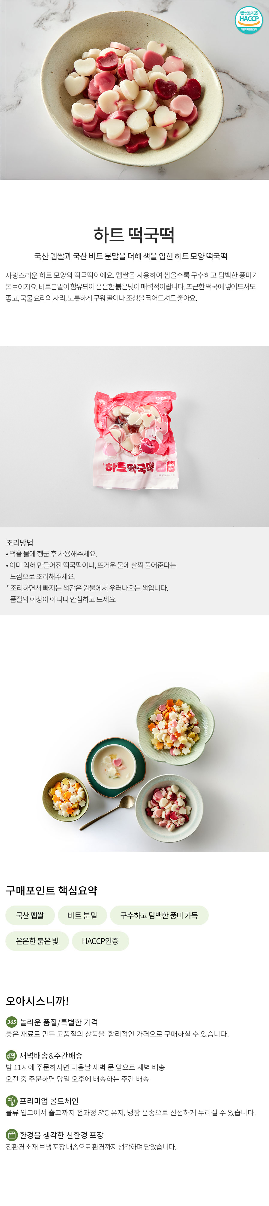 국산 맵쌀과 국산 비트분말로 핑크색을 내는 떡국떡