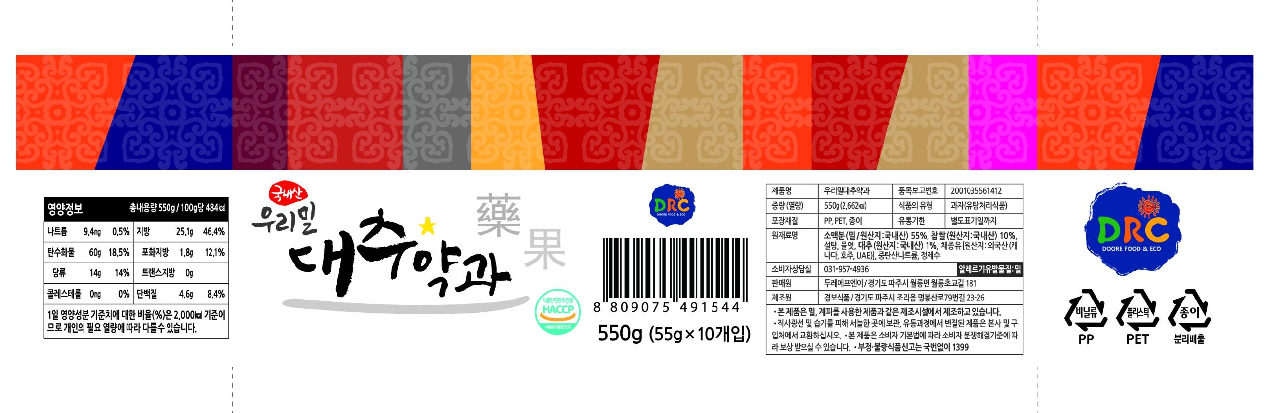 - 국산 찹쌀, 우리밀, 대추를 넣어 만들어 바삭하고 부드러운 전통 약과