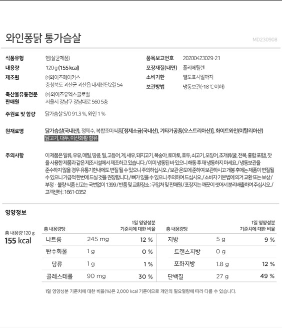 • 와인퐁닭 통가슴살 (120g×10팩)