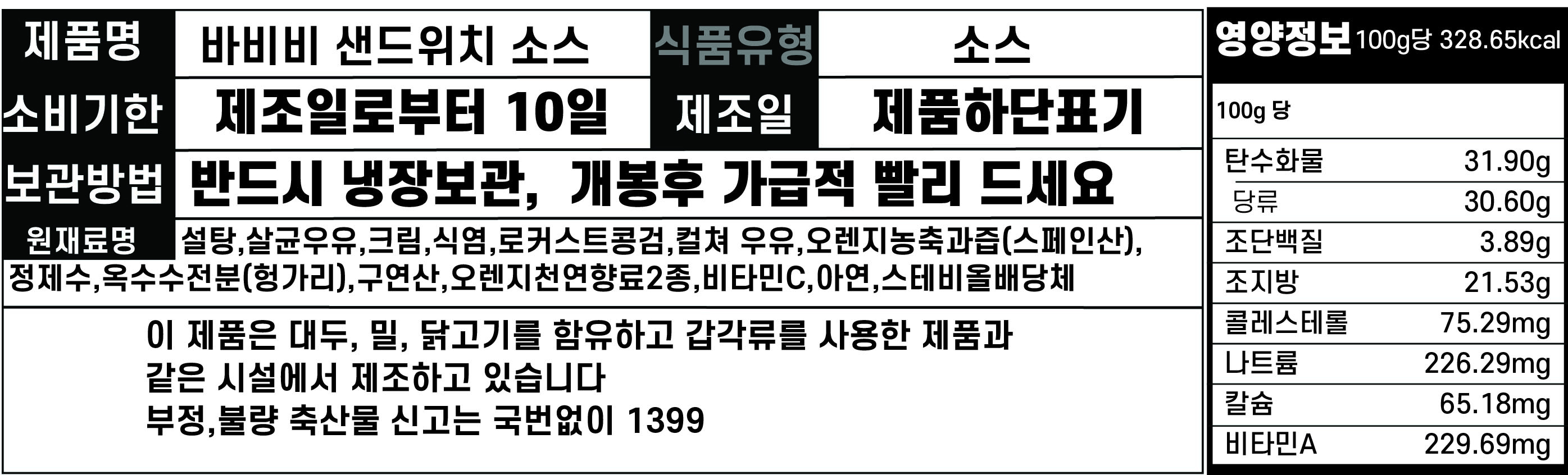 바비비 실제로 판매하고있는 레시피 그대로 샌드위치소스 500g