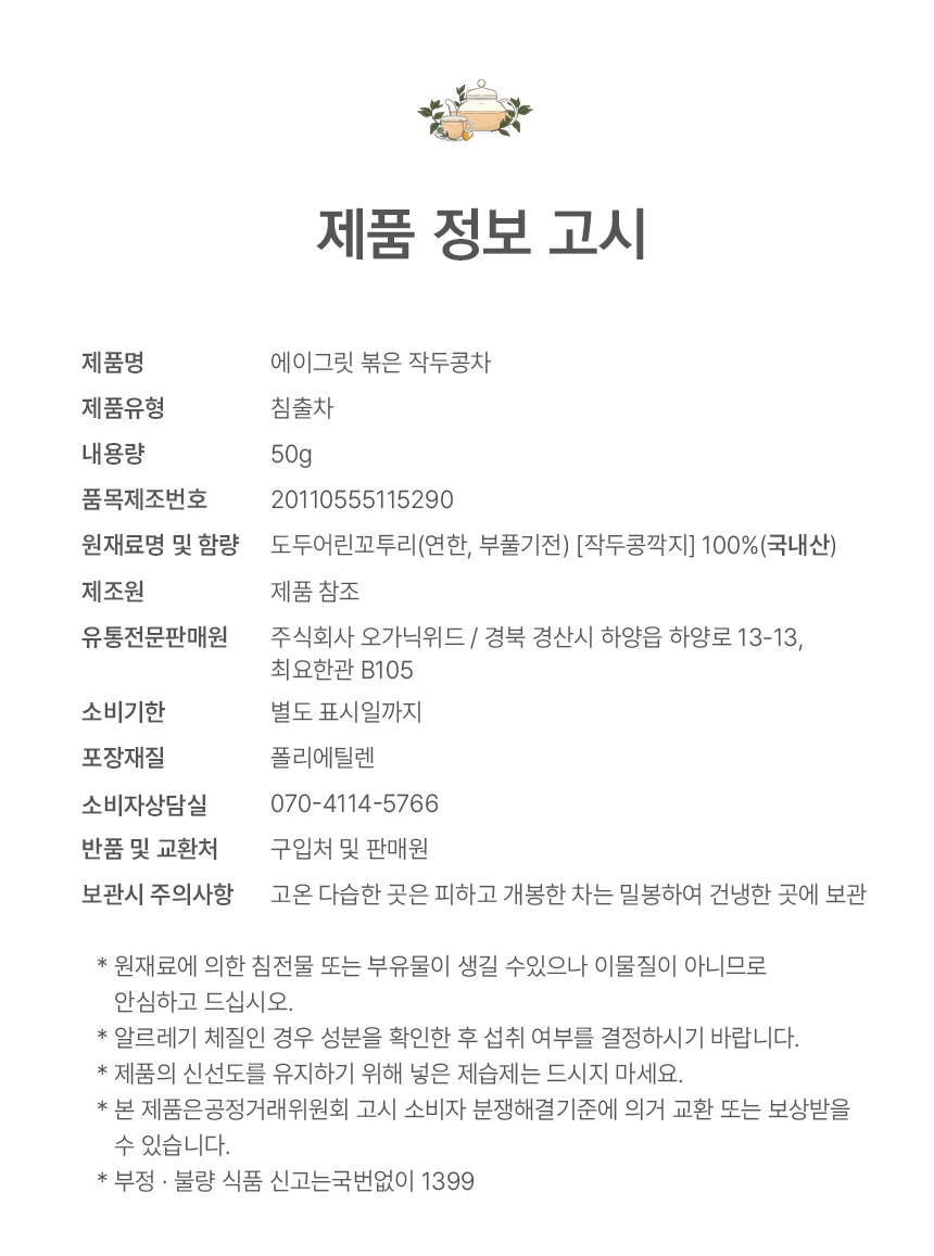올가득 작두콩차 원적외선 로스팅 원물(50g) / 티백(25개)