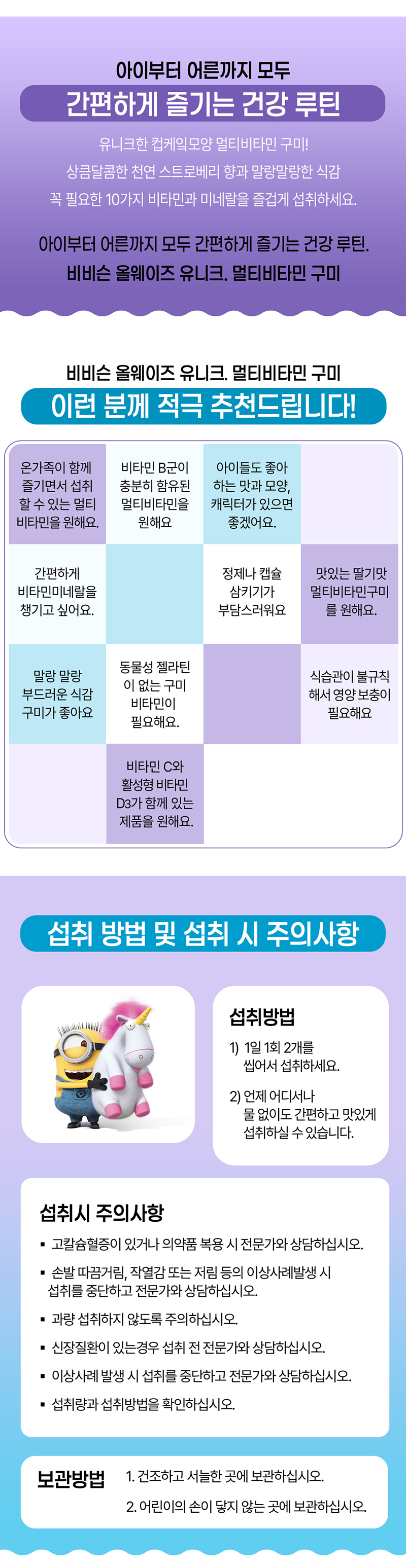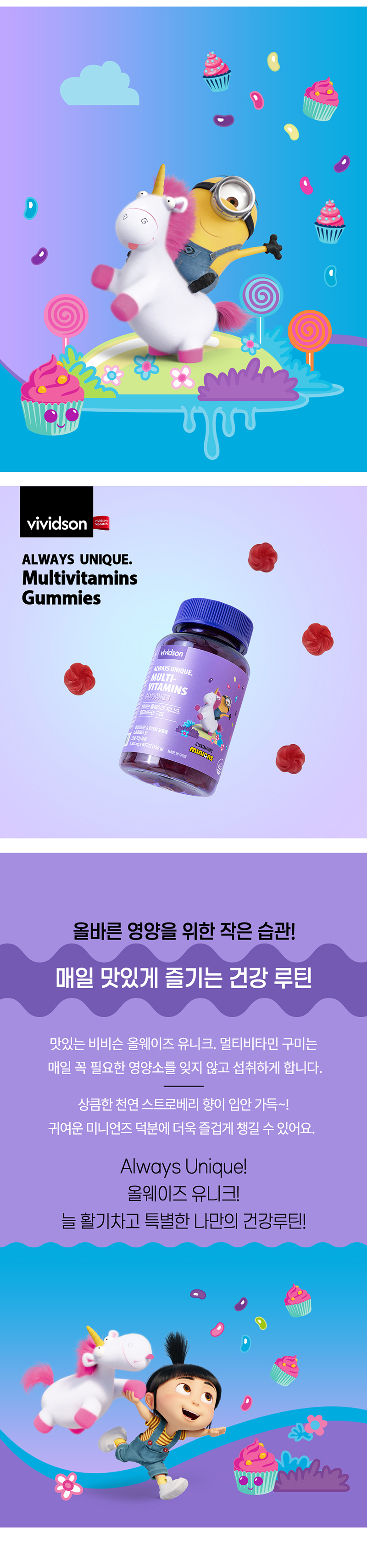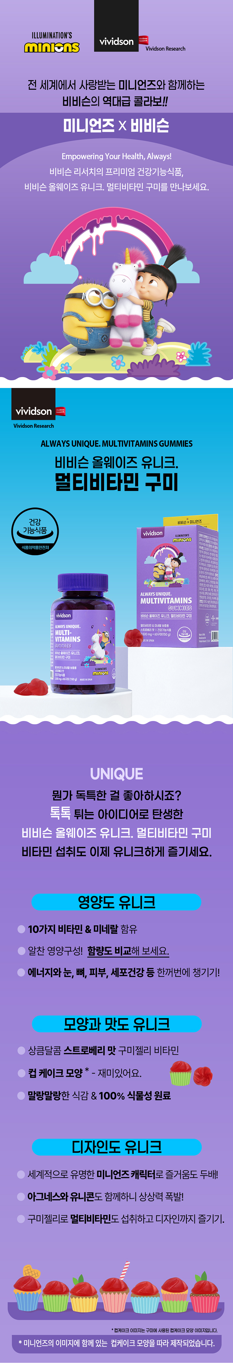 • 미니언즈x비비슨 올웨이즈 유니크 멀티비타민 구미 식물성젤리(60구미)