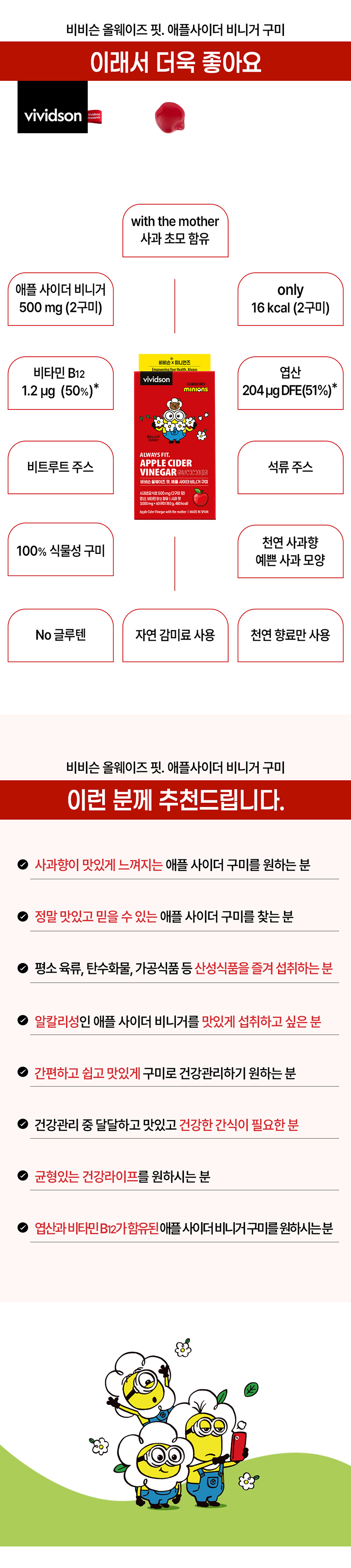 미니언즈x비비슨 올웨이즈 핏 애플사이더비니거 구미 식물성젤리(60구미)