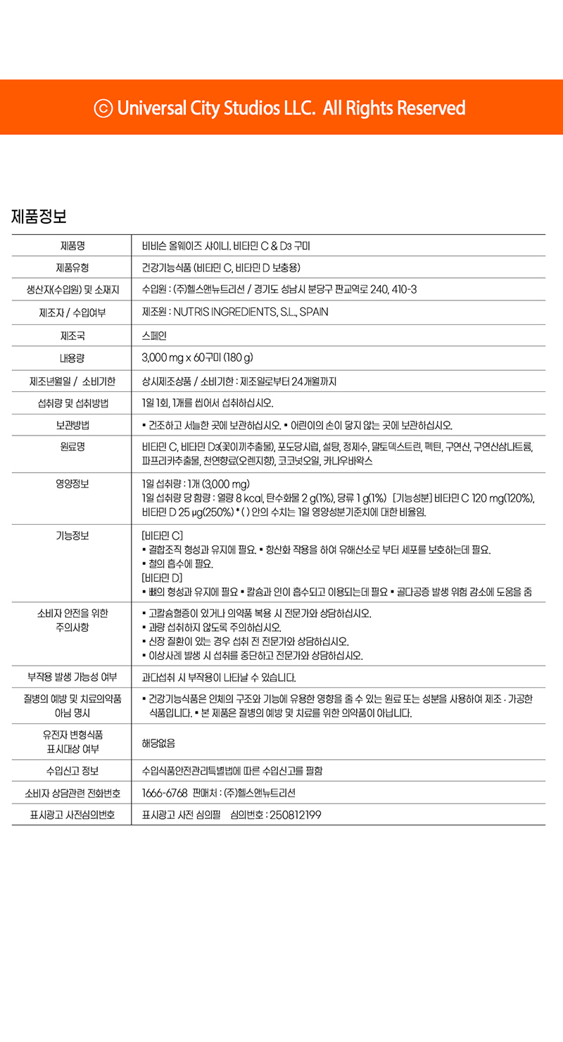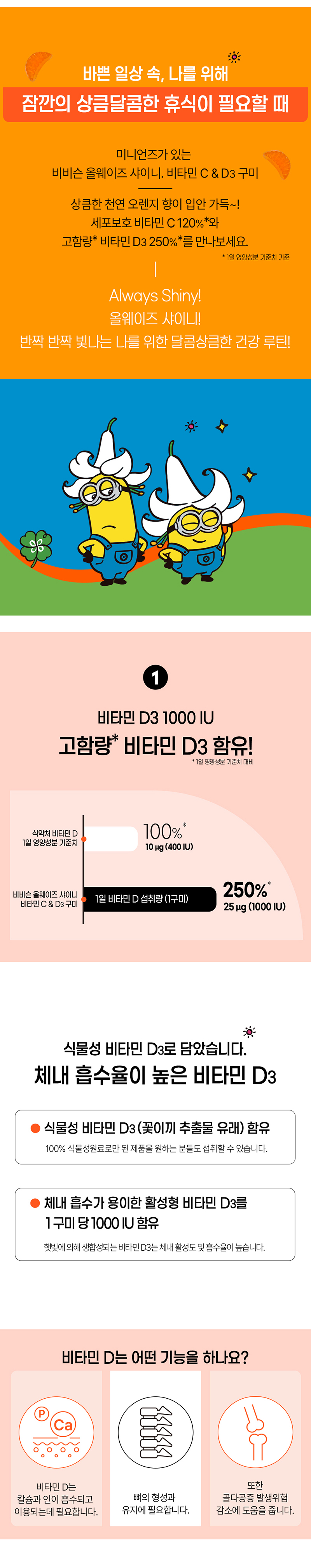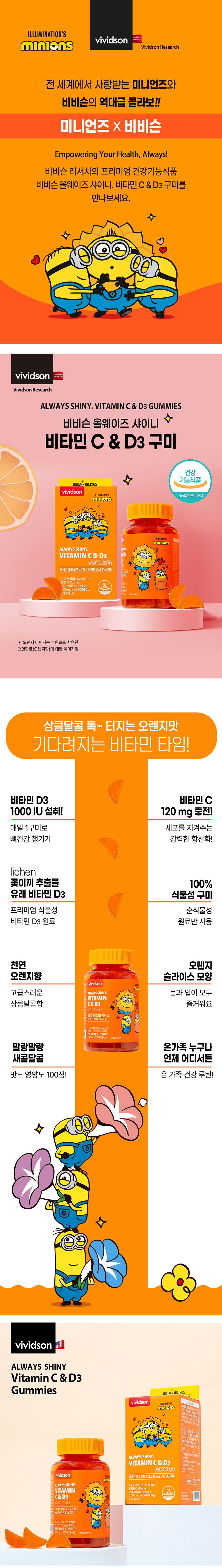 미니언즈x비비슨 올웨이즈 샤이니 비타민 C&D3 구미 식물성젤리(60구미)