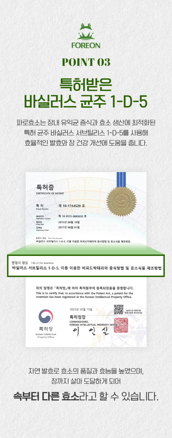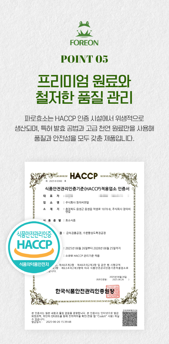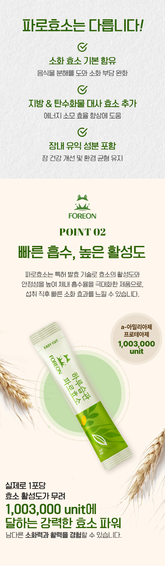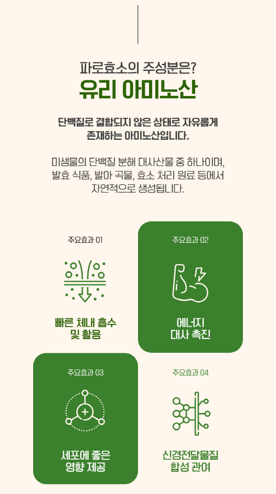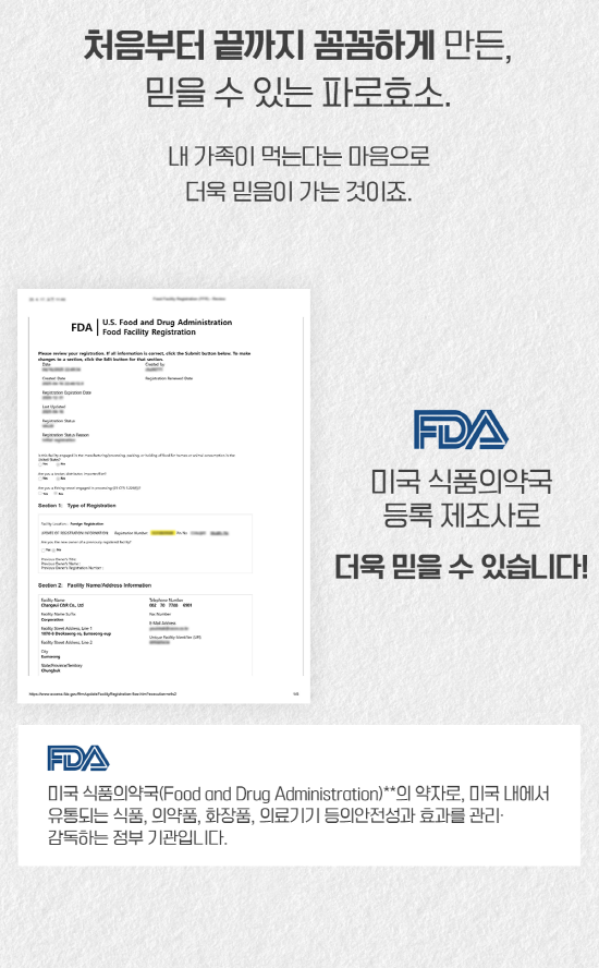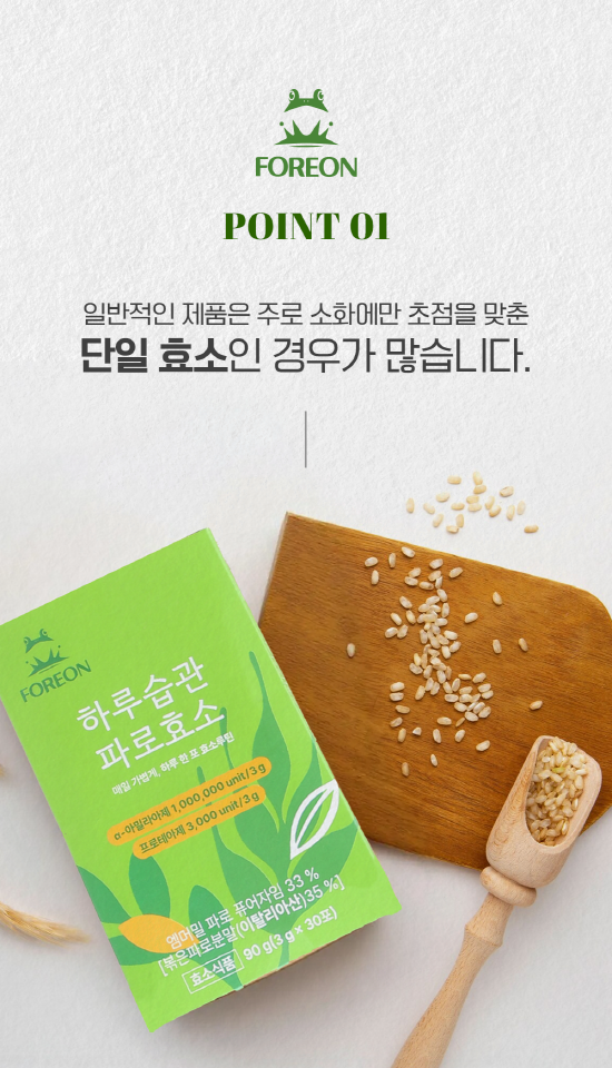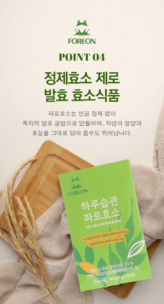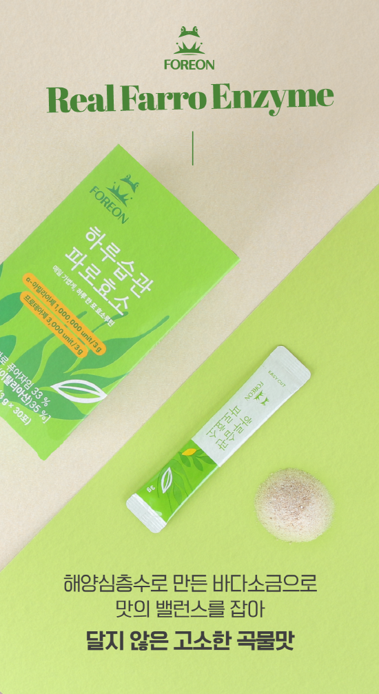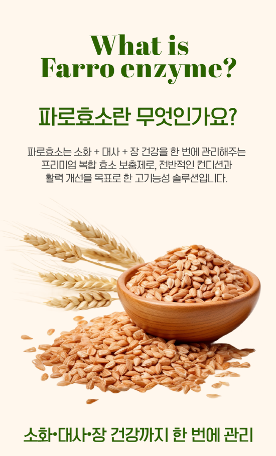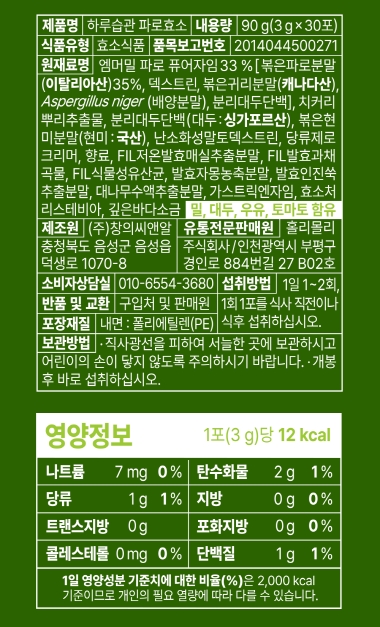 엠머밀 파로 퓨어자임33%[볶은파로분말(이탈리아산)35%, 덱스트린, 볶은귀리분말(캐나다산), Aspergillus niger(배양분말), 분리대두단백], 치커리뿌리추출물, 분리대두단백(대두: 싱가포르산), 볶은현미분말(현미: 국산), 난소화성말토덱스트린, 당류제로크리머, 향료, FIL저온발효매실추출분말, FIL발효과채곡물, FIL식물성유산균, 발효자몽농축분라, 발효인진쑥추출분말, 대나무수액추출분말, 가스트릭엔자임, 효소처리스테비아, 깊은바다소금, 밀, 대두, 우유, 토마토 포함