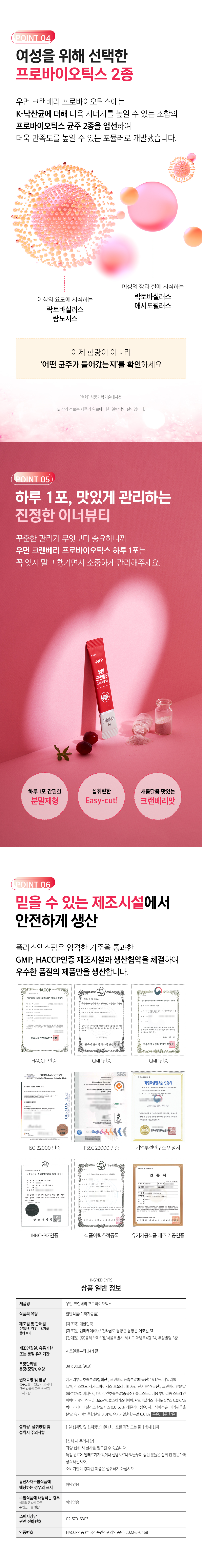 [플러스엑스팜] 우먼크랜베리프로바이오틱스 30포 / 1개월분 여성유산균