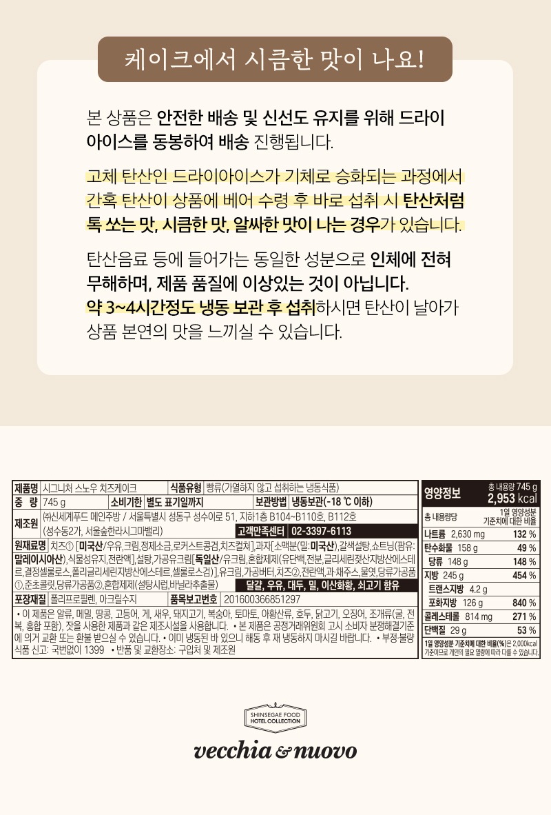 베키아에누보 시그니처 스노우 치즈 케이크(745g)