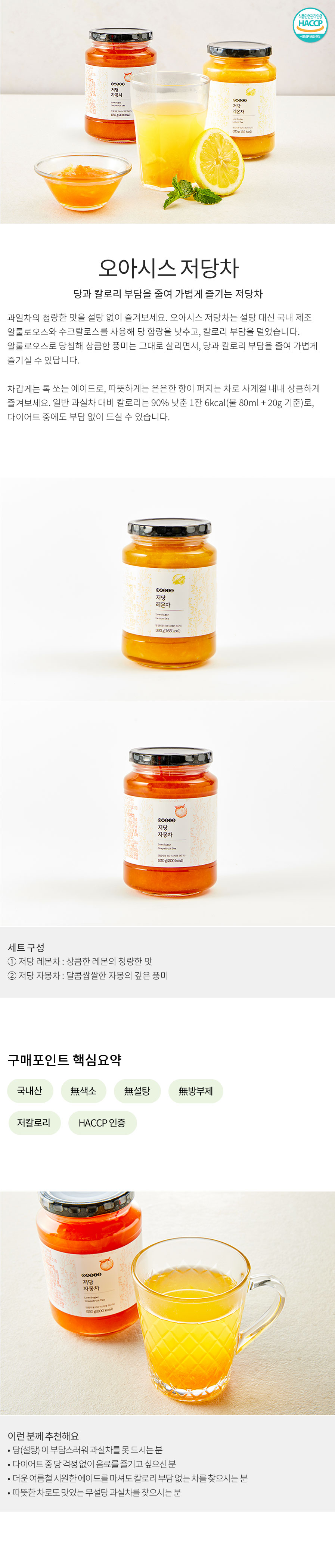 • [2입 세트 할인] 오아시스 저당 레몬차 + 자몽차