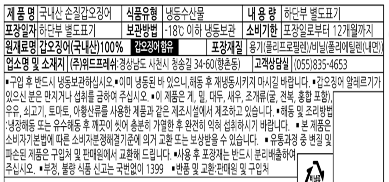 국내산 손질 갑오징어