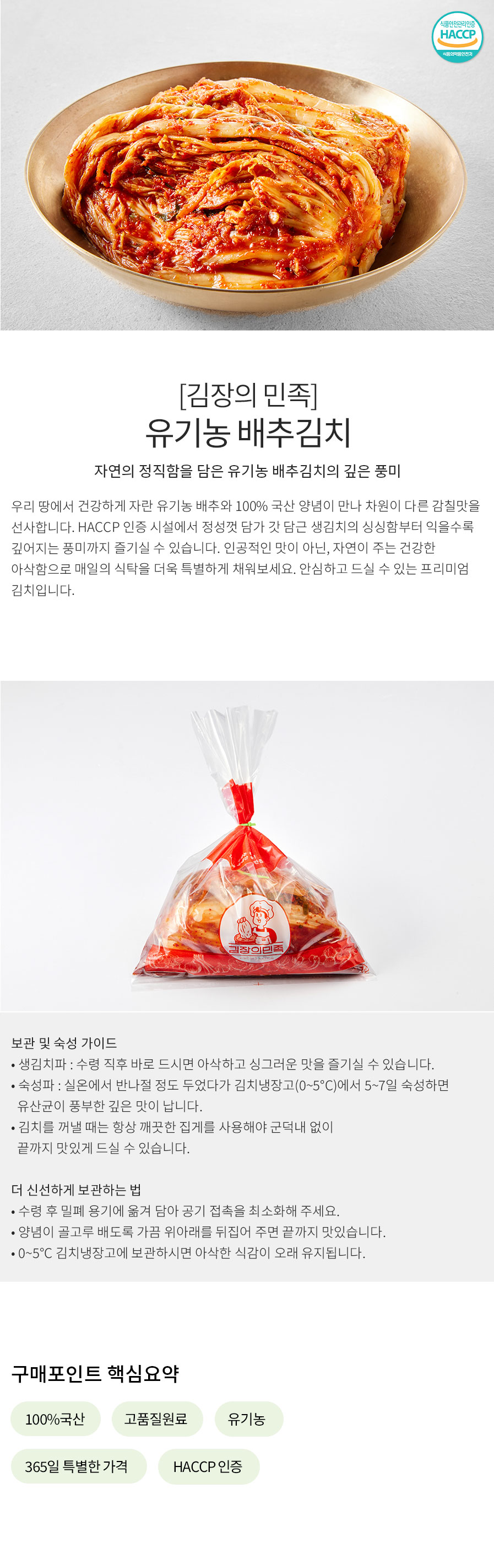 • 김장의민족 유기농 배추김치 1kg