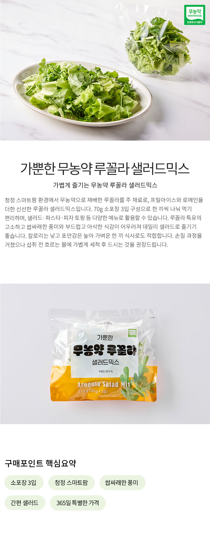 • 가뿐한 무농약 루꼴라  샐러드믹스 210g(70g x 3입)
