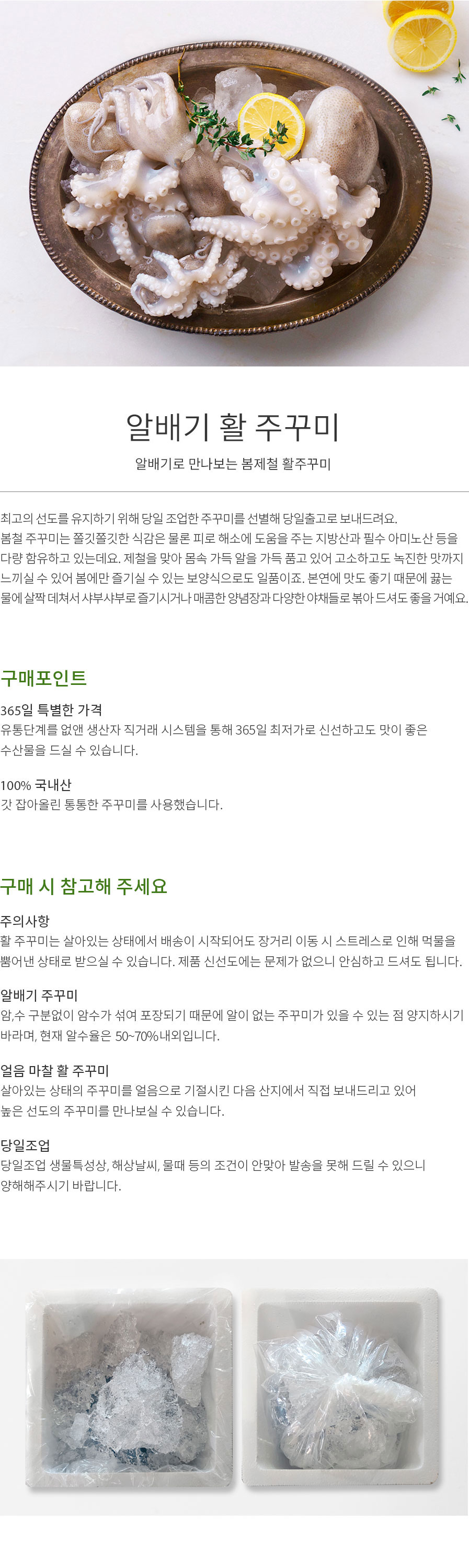 • 국내산 제철 활 알배기 쭈꾸미 500g