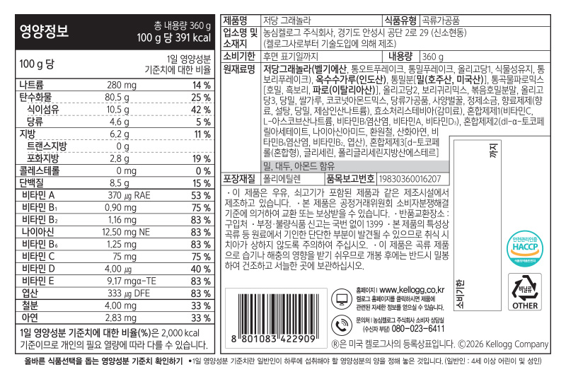 켈로그 저당 그래놀라 (360g)