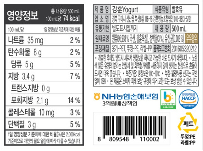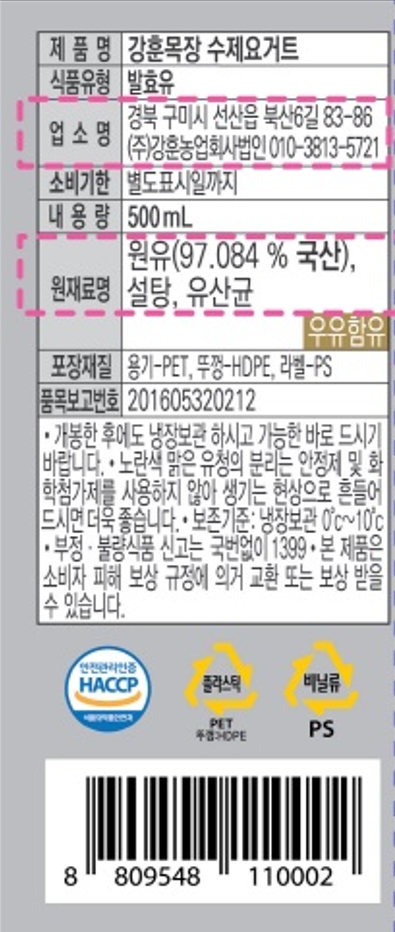 ▶2개◀강훈목장 수제 요거트 플레인(500ml)