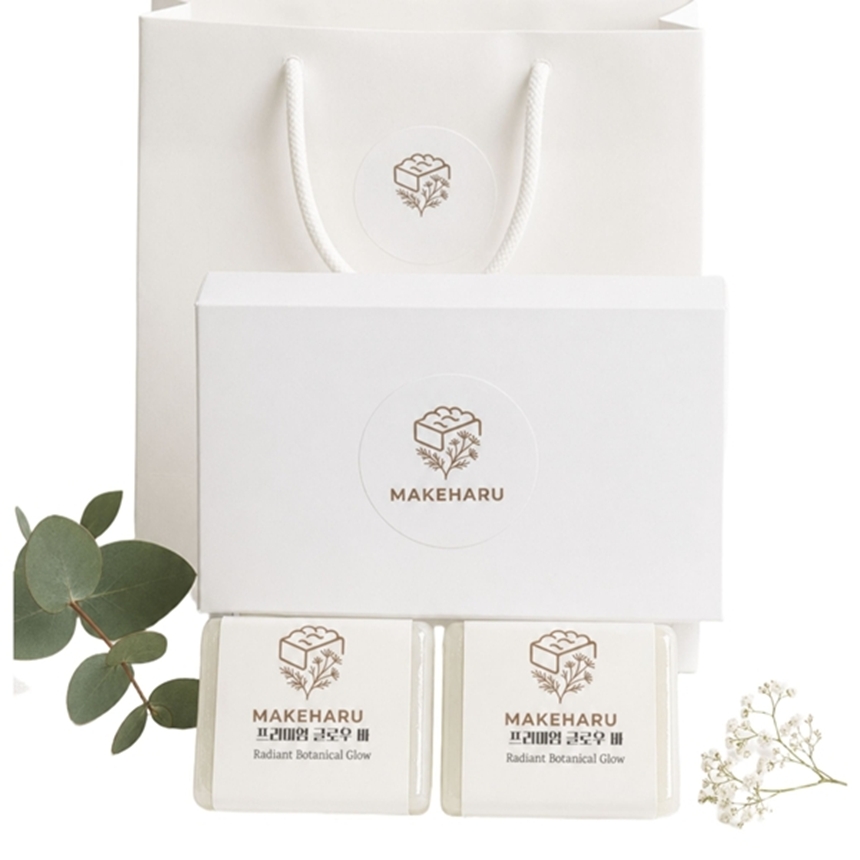 수제비누선물세트 프리미엄 글로우 바 핸드메이드비누 100g 2개 1세트 (쇼핑백, 2구박스 증정)