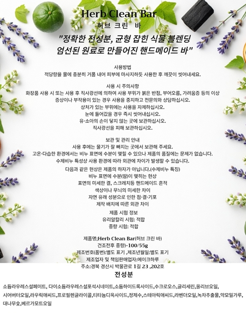 수제세안비누허브크린바 핸드메이드비누 100g 2개 세트