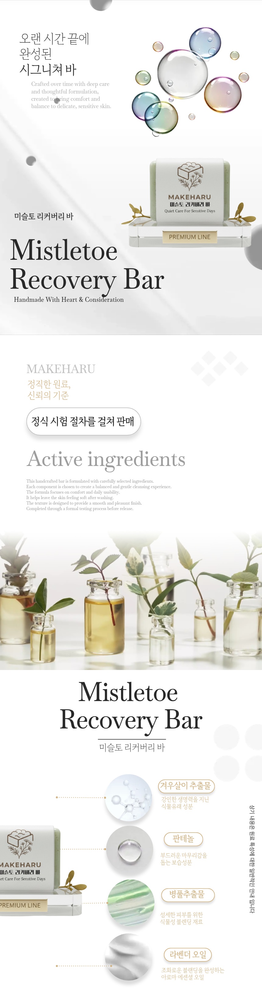 본 상품은 저희 메이크하루(makeharu)의 시그니처 비누인 미슬토 리커바리 바 1개와 프리미엄 비누 4종 중 1종을 직접 선택 하여 구성하실 수 있는 2개입 1세트 구성 상품 입니다. 예) 미슬토 리커 버리 바 1(기본) + 허브 크린 바 1(옵션에서 선택) 메이크 하루의 모든 2개 세트 상품은 쇼핑백과 2구 선물 박스가 함께 제공 되어,소중한 분께 감사의 마음을 전하는 특별한 순간에 품격을 더해 드립니다.