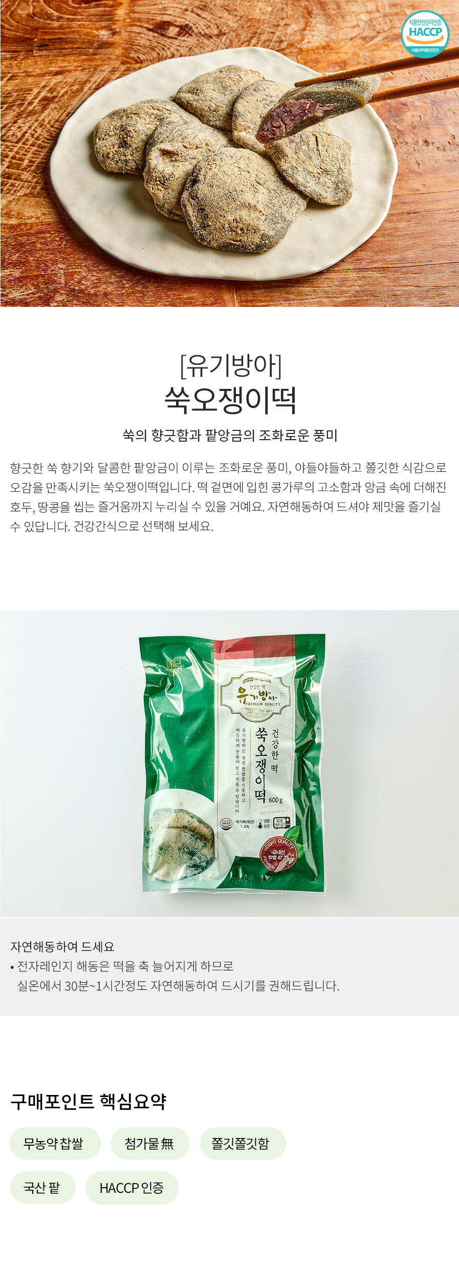 무농약 찹쌀을 바로 찧어 만든 쑥 오쟁이 떡