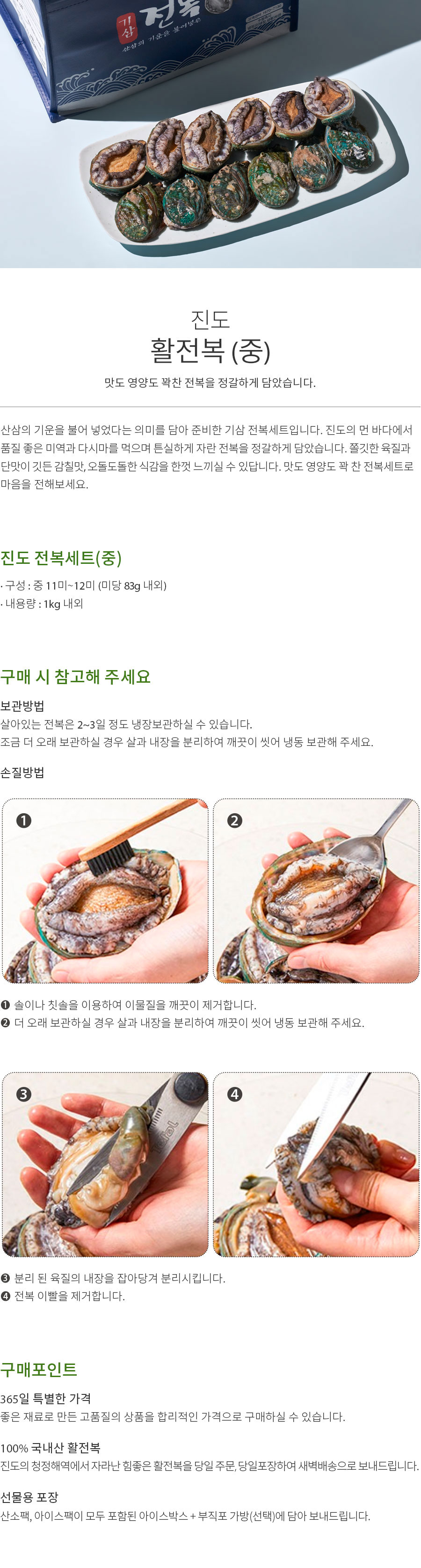 기삼 중 전복세트 1kg (11~12미/미당 83g 내외)