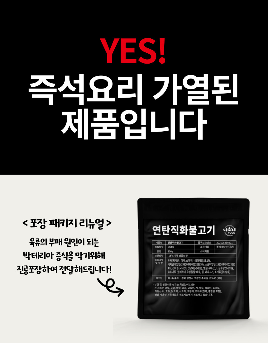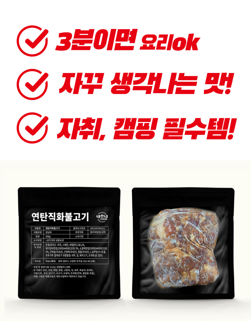 요리하지마세요. 전자렌지3분이면 맛있는 연탄불고기를 바로 드실 수 있습니다.