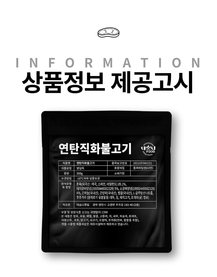 다소니푸드 HMR 직화 가열 밀키트 연탄 불고기 200g