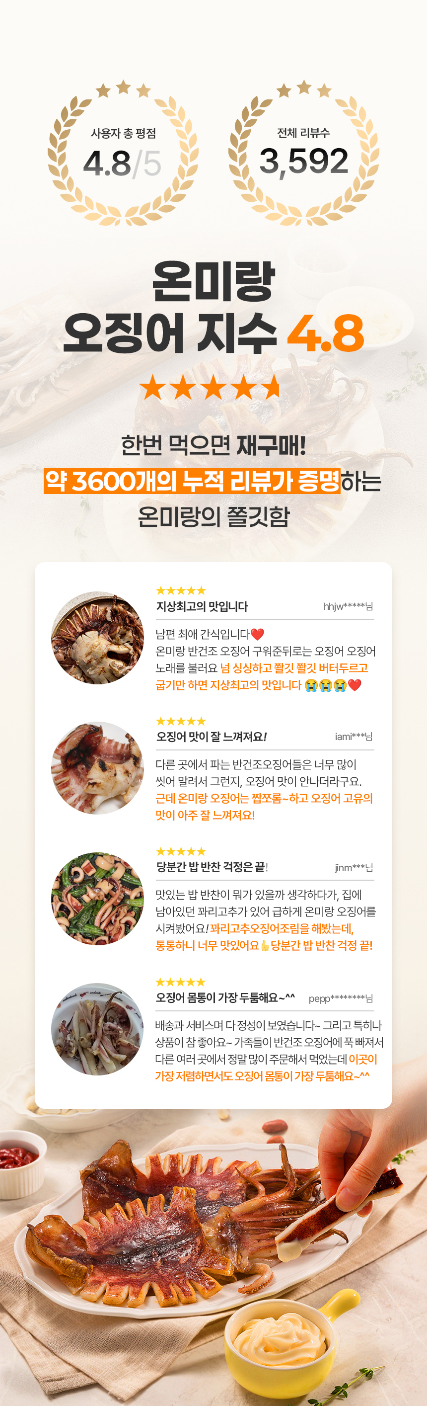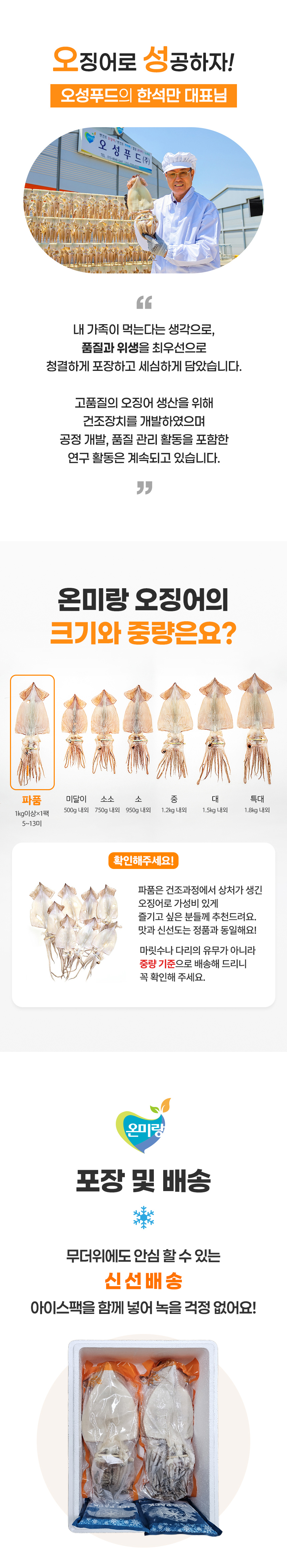 오성푸드 온미랑 반건조오징어 파지 파품 반건 피데기 피대기