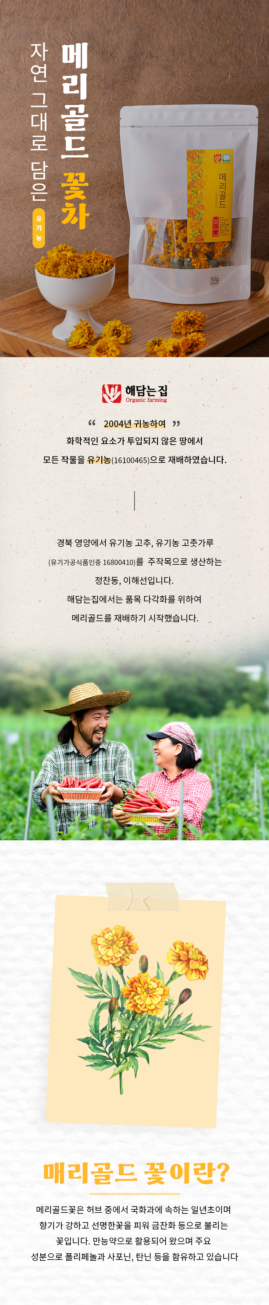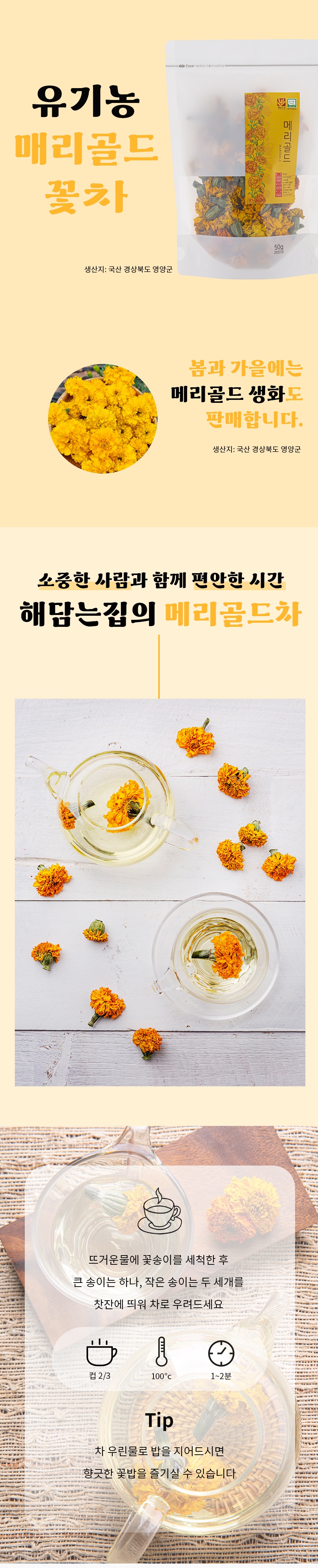 유기농 메리골드 건조차 50g/꽃차/생화/식용꽃