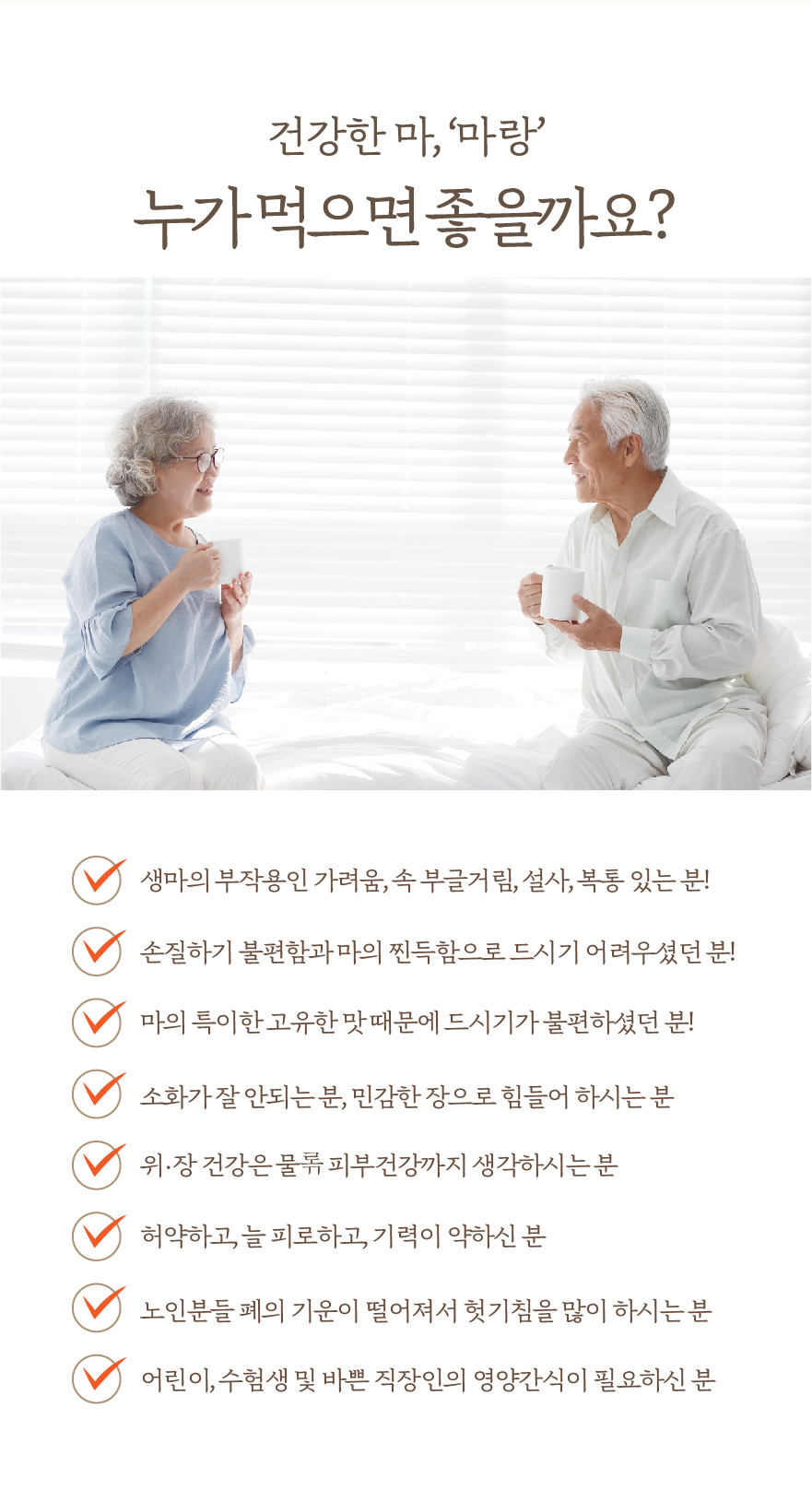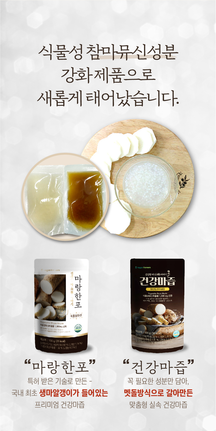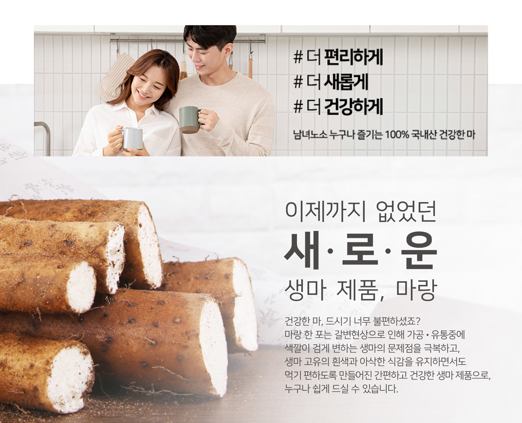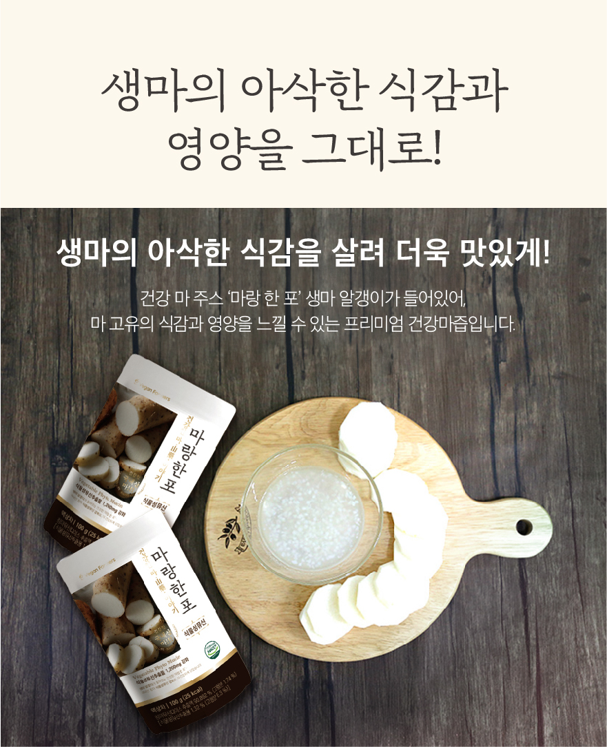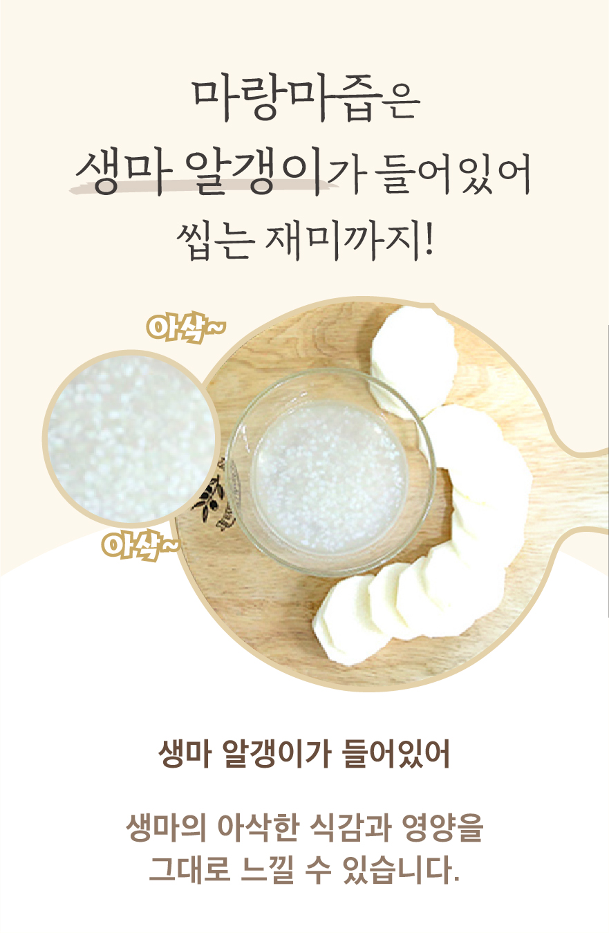 2) 생마 알갱이가 함유되어 있어서, 생마 그대로의 아삭함을 느낄 수 있는 건강한 마 제품!