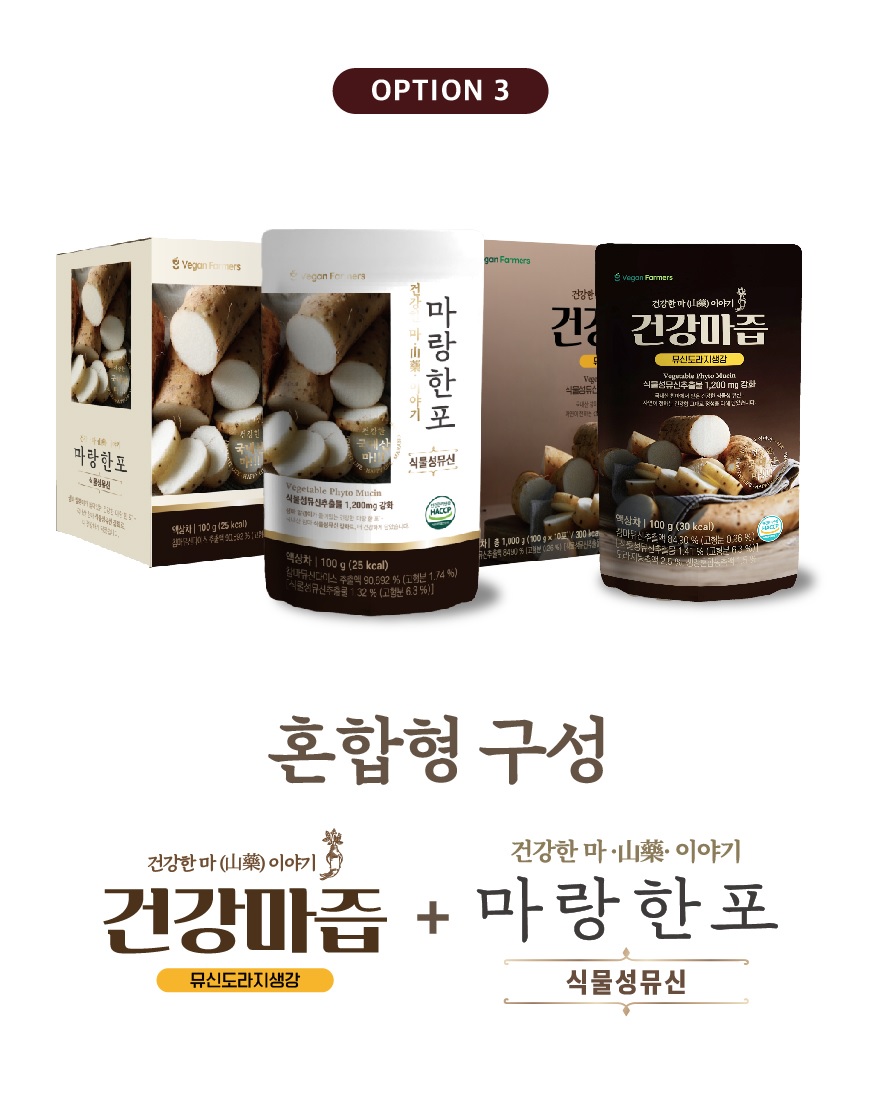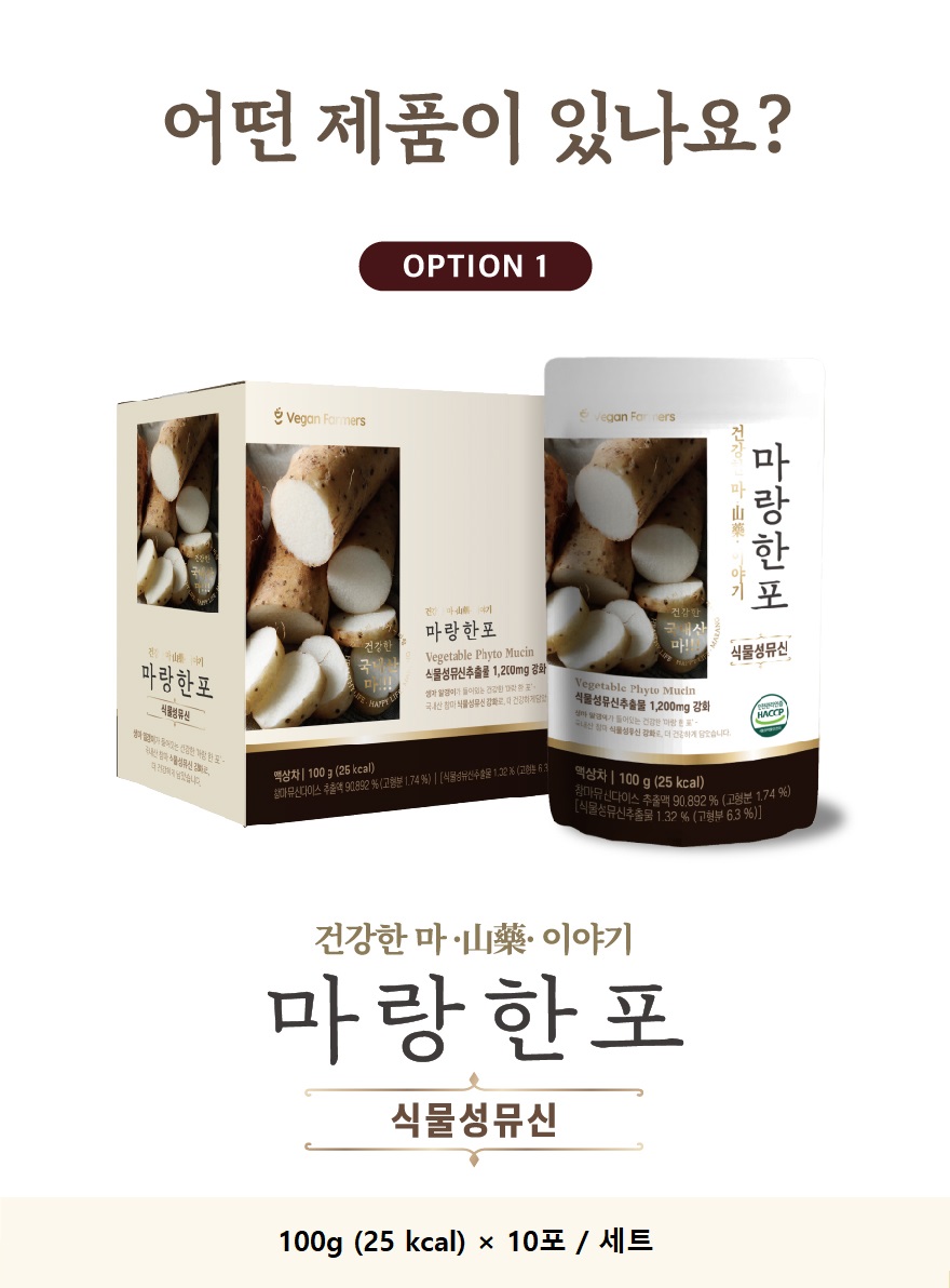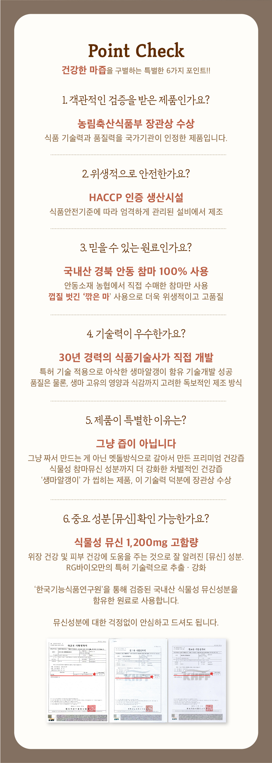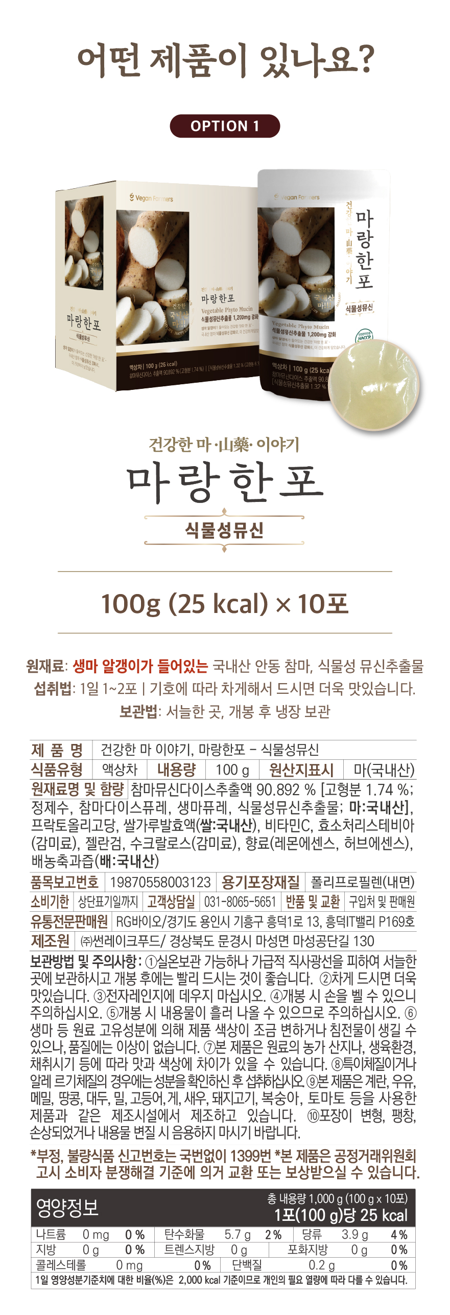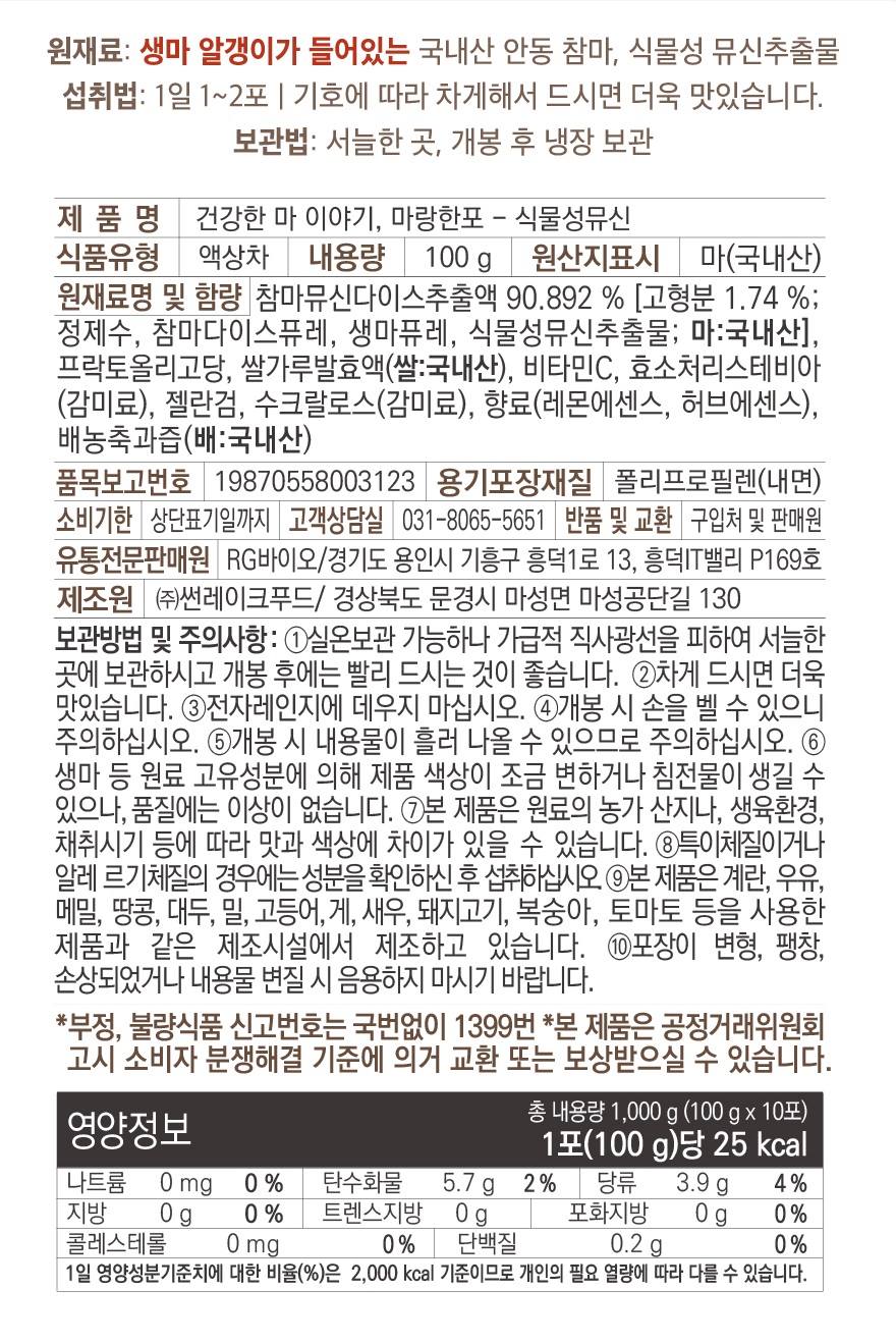 2) 생마 알갱이가 함유되어 있어서, 생마 그대로의 아삭함을 느낄 수 있는 건강한 마 제품!
