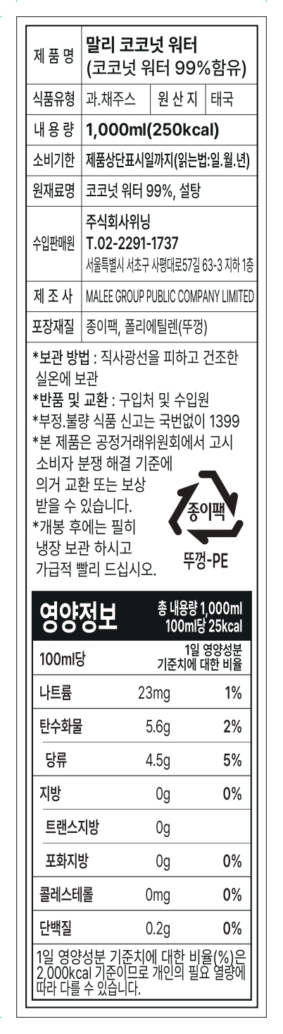 코코넛 본연의 깔끔한 맛 그대로 청량하게!