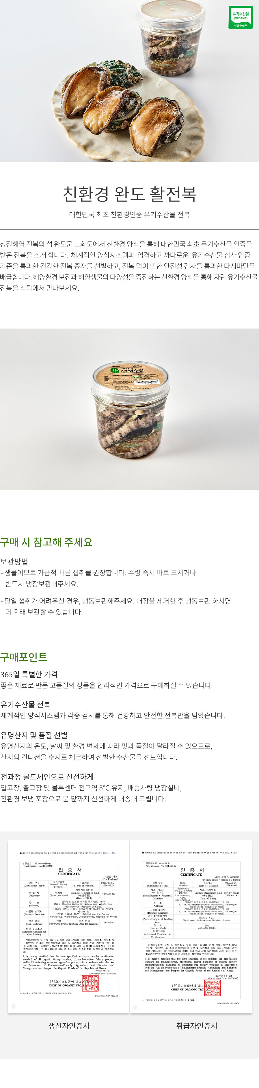 대한민국 최초 친환경인증 유기수산물 전복