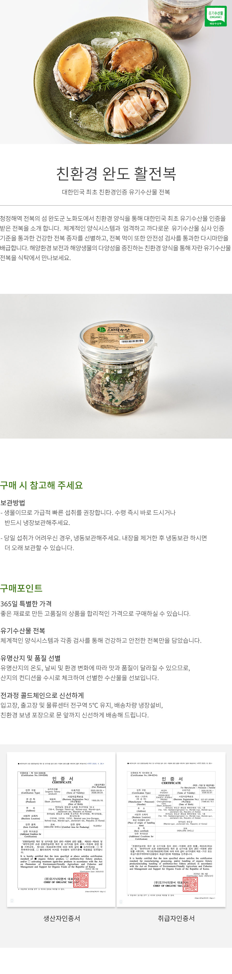 대한민국 최초 친환경인증 유기수산물 전복