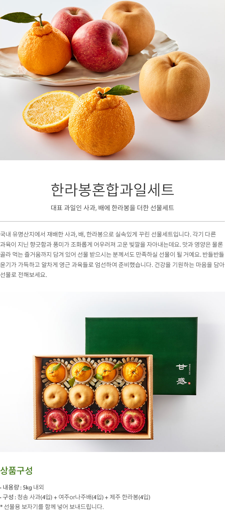[설선물 마음전송]VIP 한라봉혼합과일세트(5kg내외/사과4입+배4입+한라봉4입)