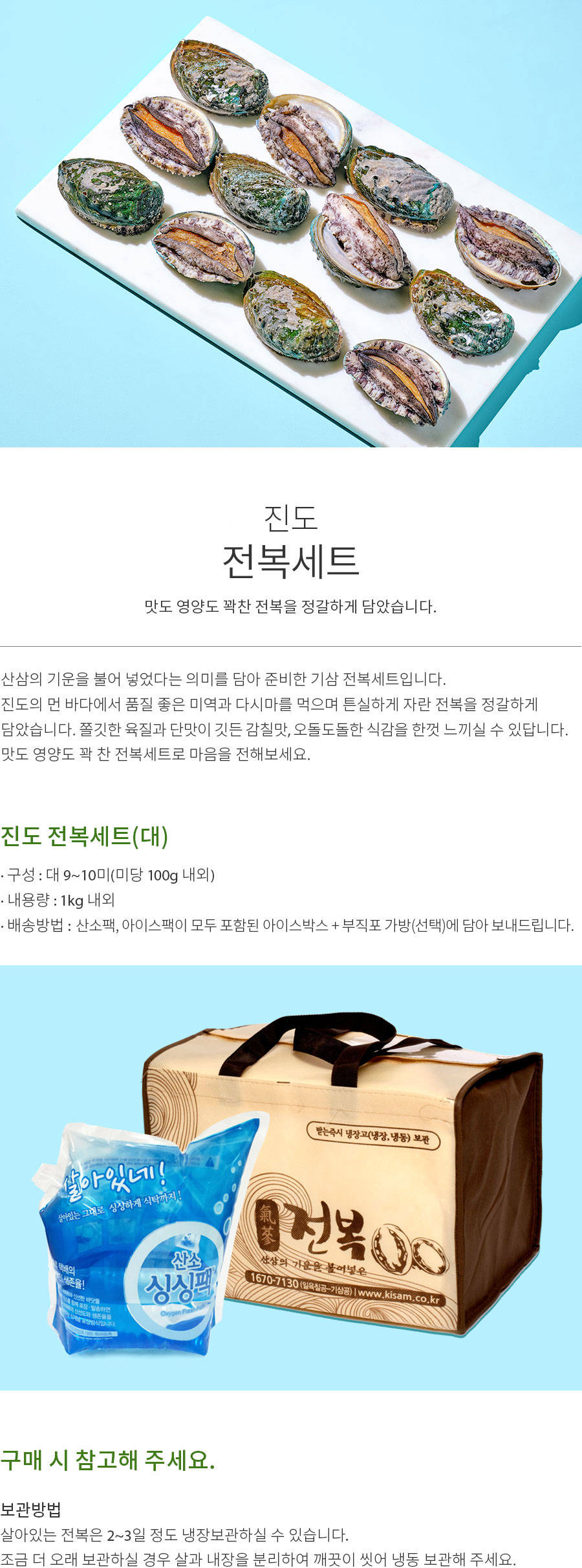 기삼 대 전복세트 1kg(9~10미/미당 100g 내외)